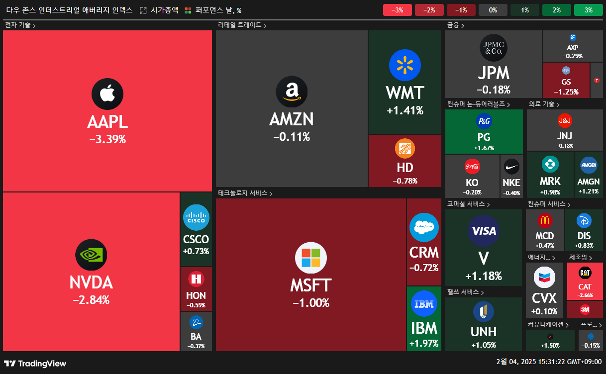🔍 다우지수를 구성하는 기업들은 모두 잘 알고 있는 회사들입니다!