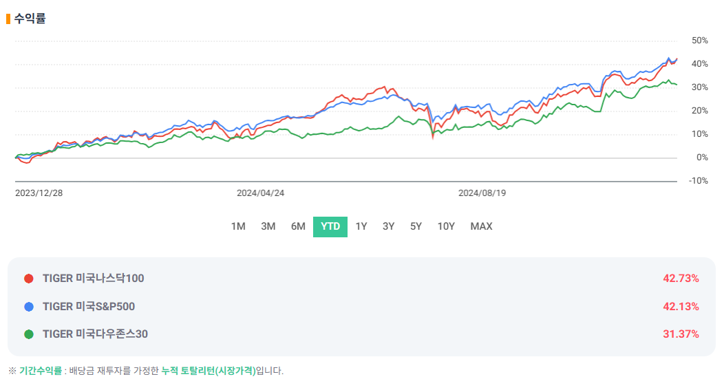 1. TIGER 미국나스닥100: 42.73% 🚀