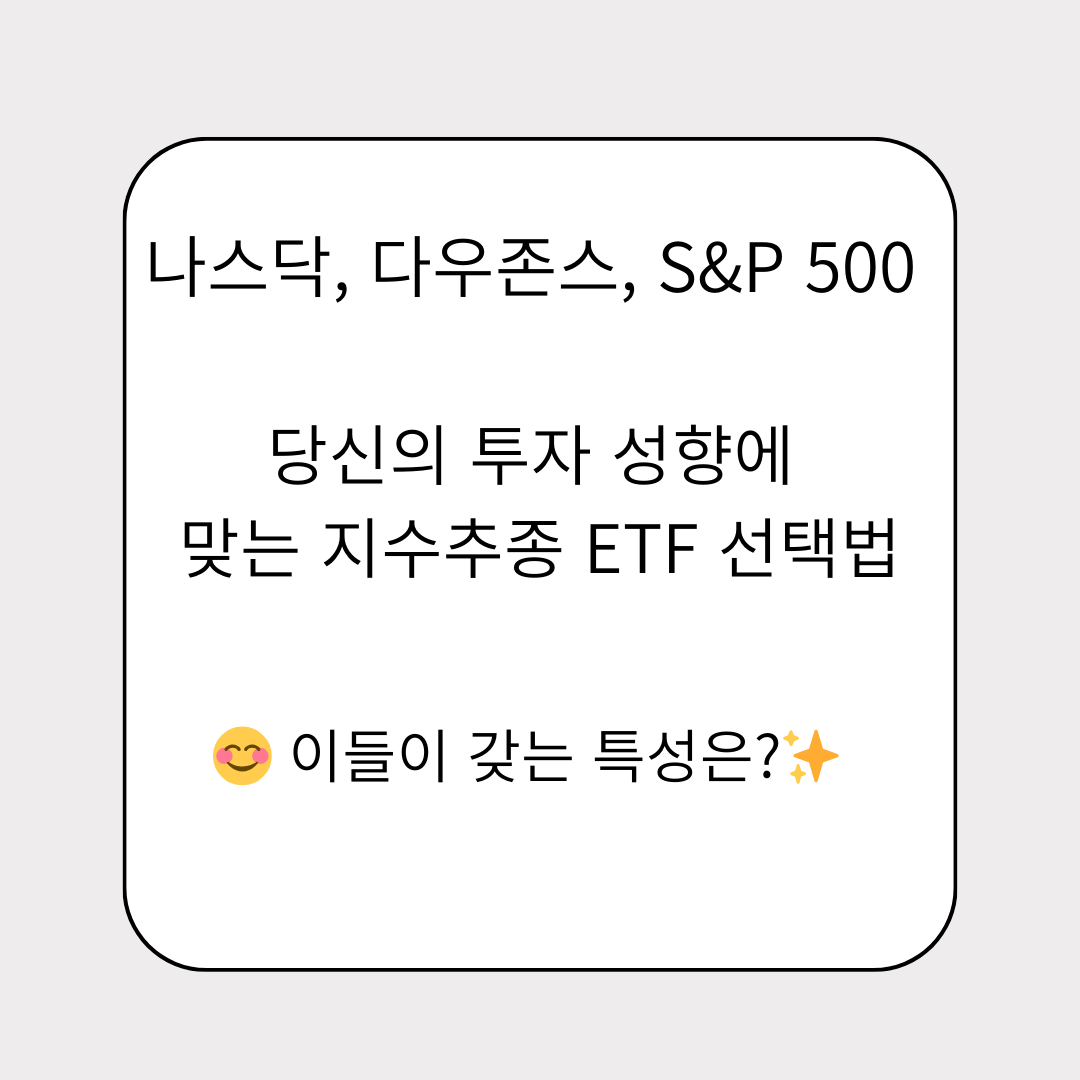 💹 "기술주 중심의 성장을 원한다면 나스닥, 안정적인 대기업 배당을 원하면 다우존스, 그리고 다채로운 산업에 분산 투자하며 안정과 성장을 모두 잡고 싶다면 S&P 500"이 당신의 완벽한 선택이 될 것입니다. 🎯