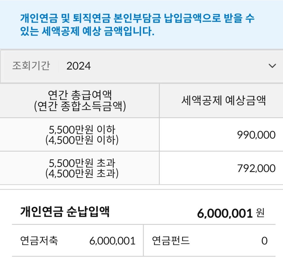 - 예를 들어: 연간 600만 원을 납입하면, 총급여 수준에 따라 최대 79만 2천 원에서 99만 원까지 세금을 돌려받을 수 있어요.