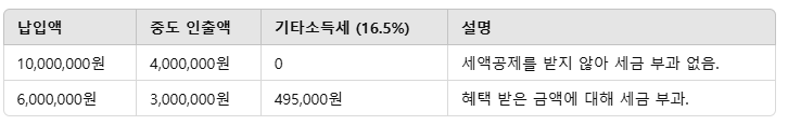 아래는 중도 인출에 따른 세금 부과 예시입니다: