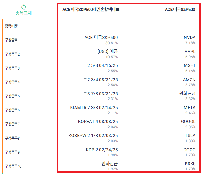 1️⃣ 채권혼합형 ETF (ACE 미국S&P500채권혼합액티브)