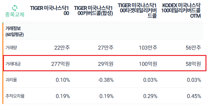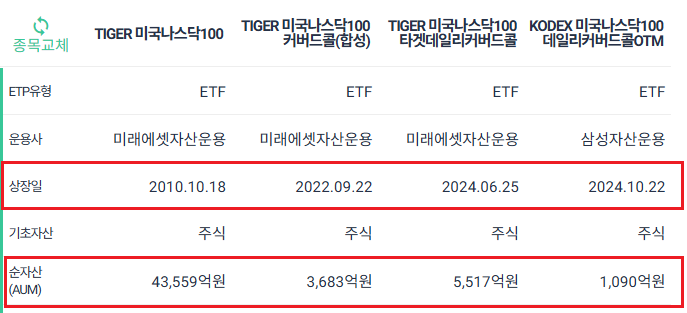 - TIGER 미국나스닥100 타겟데일리커버드콜 (486290) - 하루 만기 + ATM, 상승 여력 가장 낮음.