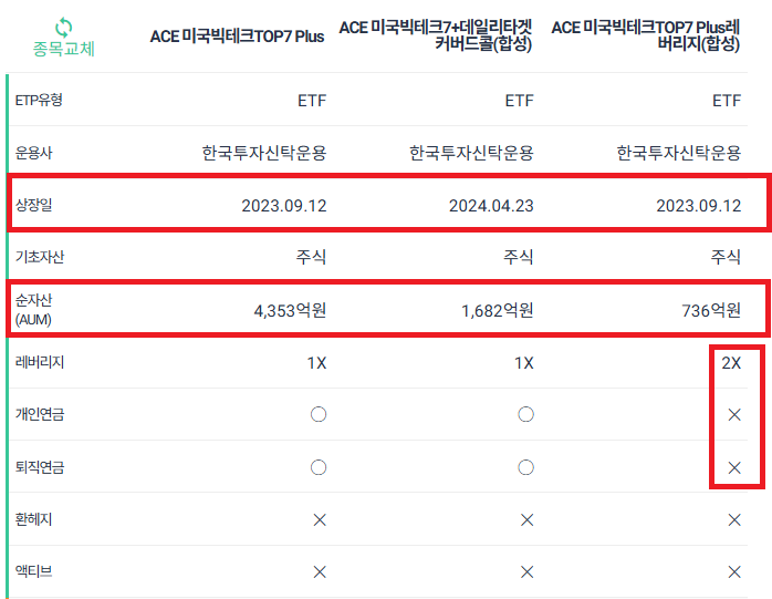 - ACE 미국빅테크 TOP7 Plus와 ACE 미국빅테크TOP7 Plus 레버리지(합성)는 둘 다 2023년 9월 12일에 상장했어요.