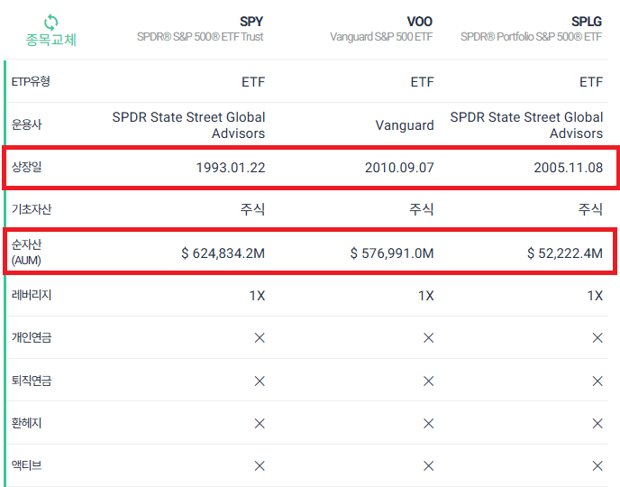 🗓️ 상장일 순서: SPY > SPLG > VOO