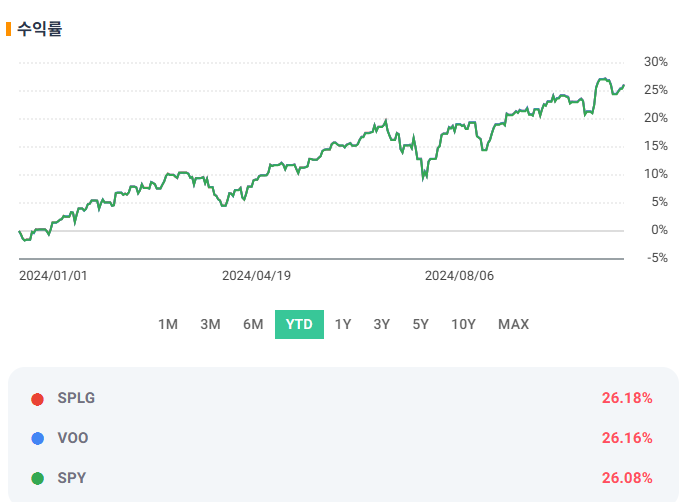 - VOO와 SPLG는 운용보수가 낮기 때문에 수익이 투자자에게 더 많이 돌아가는 구조입니다.