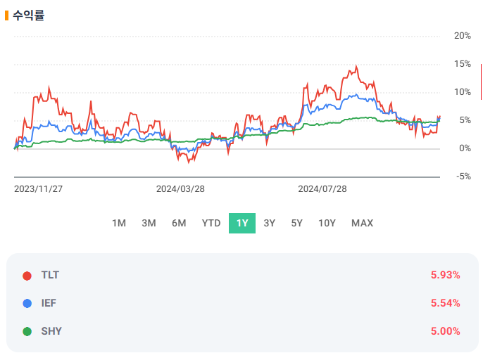 TLT, IEF, SHY: 1년 수익률 한눈에 보기! 📈