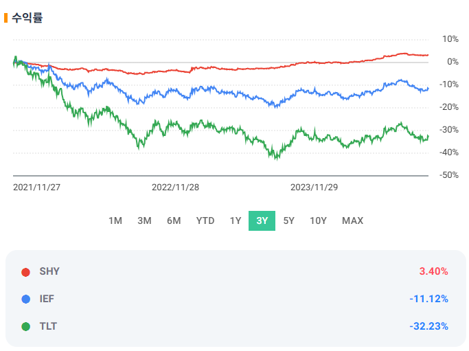 TLT, IEF, SHY: 3년 수익률 비교 📉
