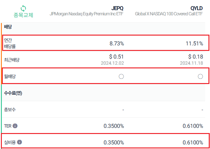 - JEPQ: 최근 배당금 $0.51 (2024.12.02).