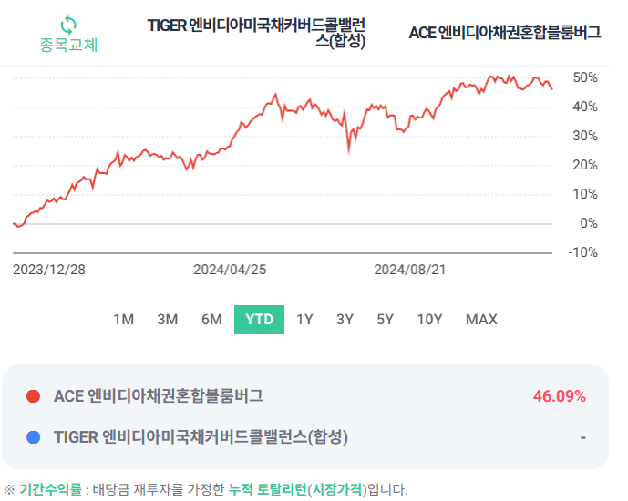 반면, TIGER 엔비디아미국채커버드콜밸런스(합성)은 오늘 상장되었기 때문에 아직 수익률 데이터는 없지만, 미국 장기채와 커버드콜 전략을 활용한 새로운 상품으로 주목받고 있습니다.