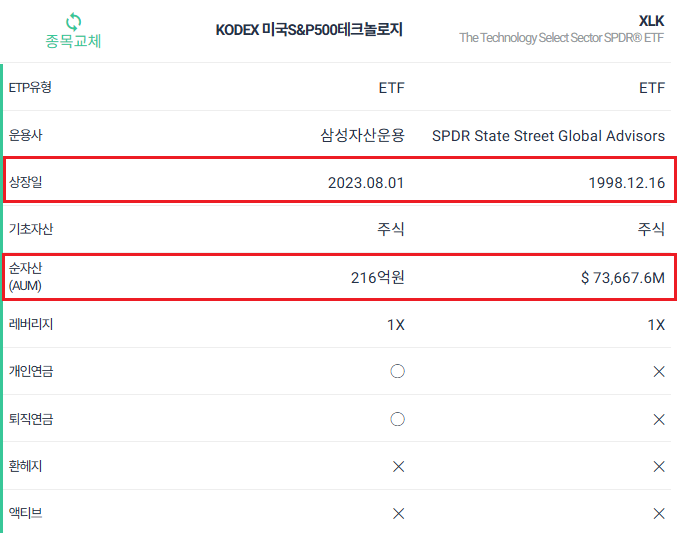 1️⃣ 규모와 안정성: XLK는 오랜 역사와 대규모 자산을 보유하여 글로벌 시장에서 검증된 상품입니다. 반면, KODEX는 신생 상품으로 아직 자산 규모가 작습니다.